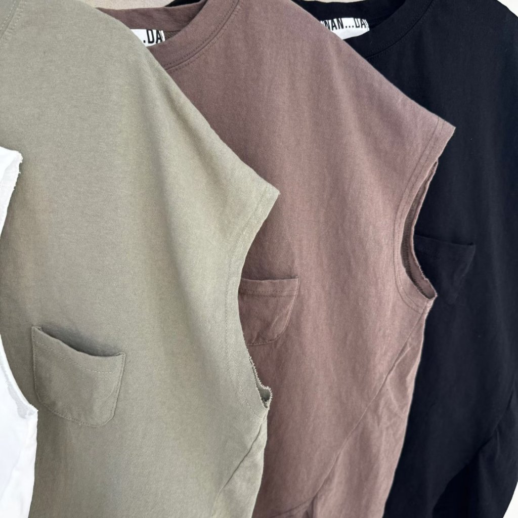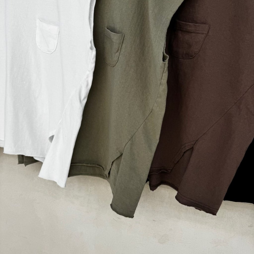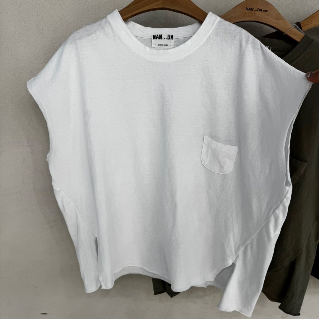NN01 韓國 🇰🇷 NAN…DA 左胸小袋開叉腳背心Top $139 白、綠、啡、黑 長24寸、總闊48寸