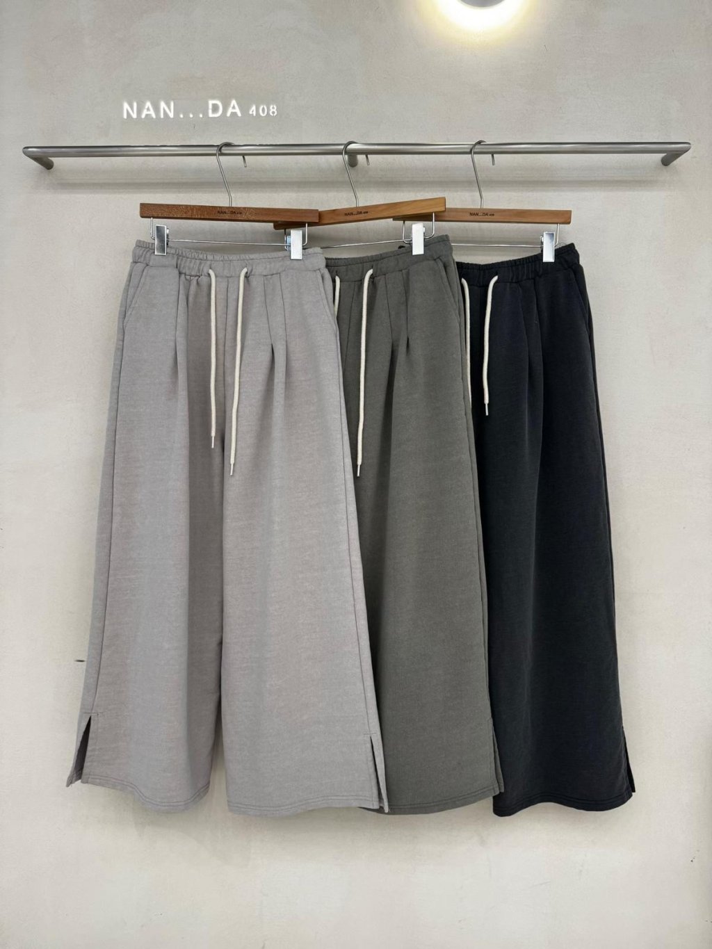 主頁 NN08 韓國 🇰🇷 NAN…DA 全橡筋腰摺骨兩側開叉腳長褲 $229 淺灰、綠、深灰 腰26-40寸、Hip48寸、長100cm
