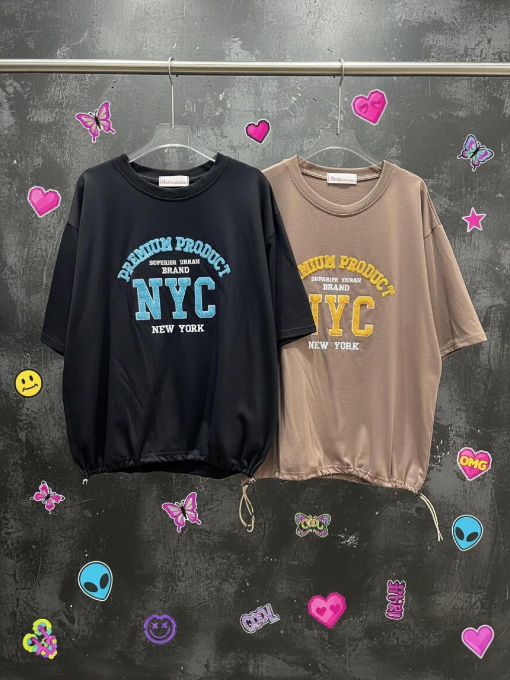 KF985 棉料NYC毛巾字可束腳TOP 黑、啡 $139 長24吋、闊48吋