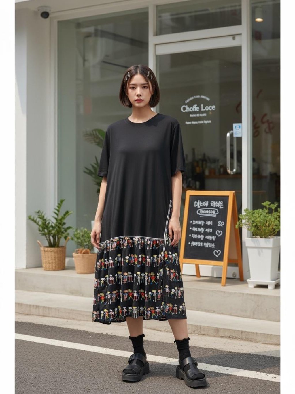 KF990 棉料下拼彩色人仔OPS $149 長46吋、胸闊42吋、腰闊48吋、HIP62吋