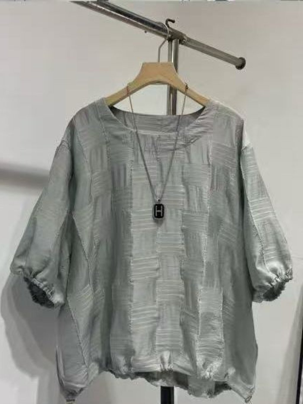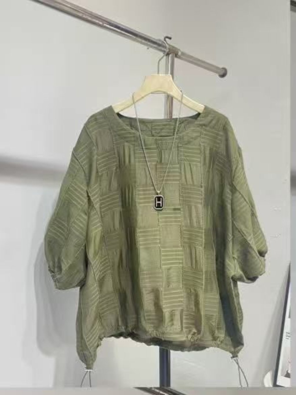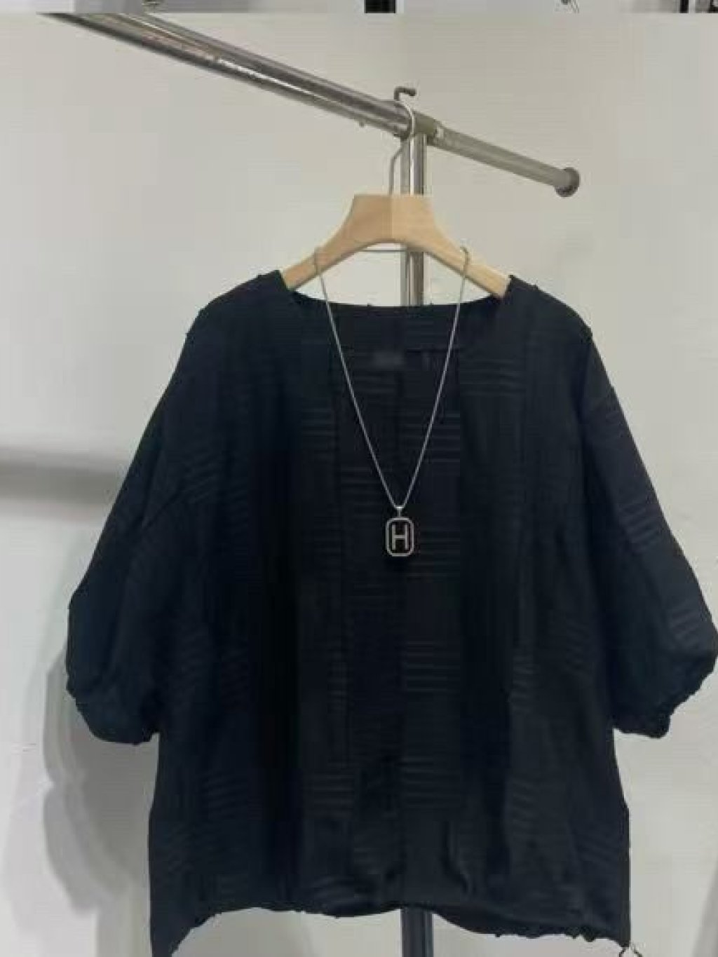 KF09 純色暗紋泡泡袖大TOP 長23吋、闊58吋 $129 黑、灰、綠