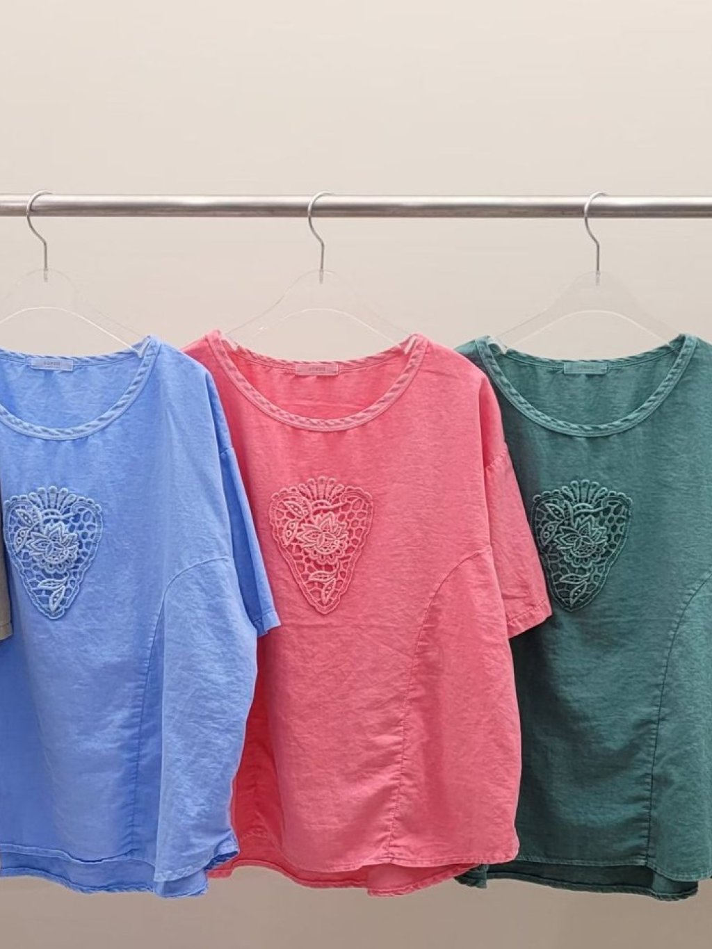 PR16 韓國 - POWDER蕾絲花卉刺繡Top 前長24吋、後長25吋、闊50吋 $199 杏、藍、粉、綠、黑