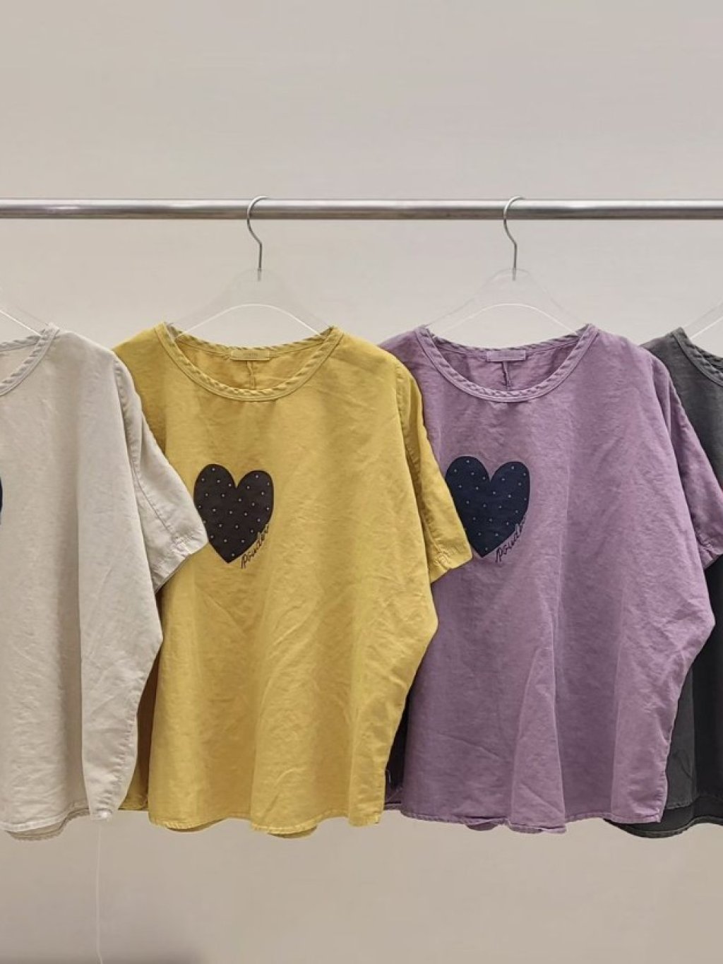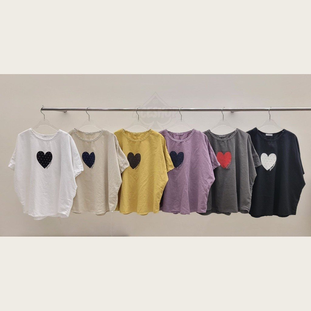 PR20 韓國 - POWDER波點愛心Top 長25吋、闊54吋 $179 白、杏、黃、紫、灰、黑