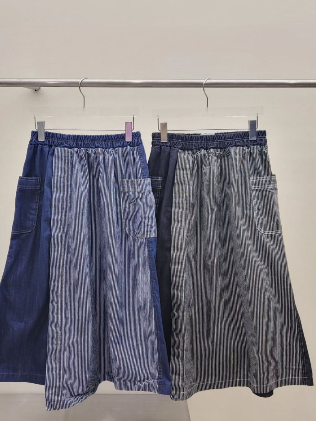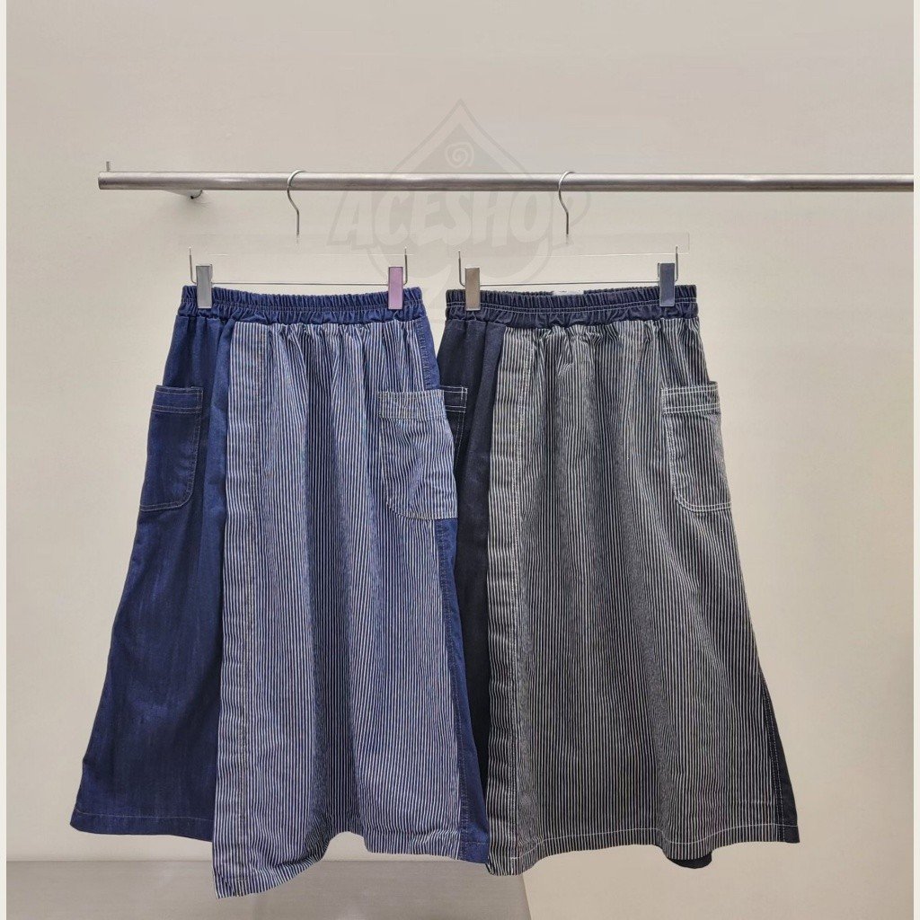 PR21 韓國 - POWDER全橡筋腰條子牛仔裙 腰26-44吋、HIP48吋、長80cm $249 藍、黑