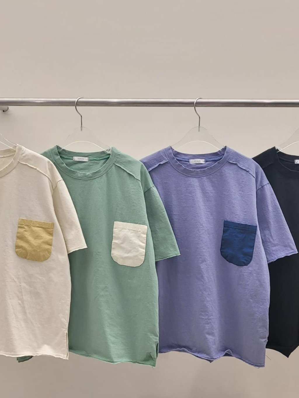 PR25 韓國 - POWDER左胸撞色方袋Top 長26吋、闊46吋 $149 杏、綠、藍、黑