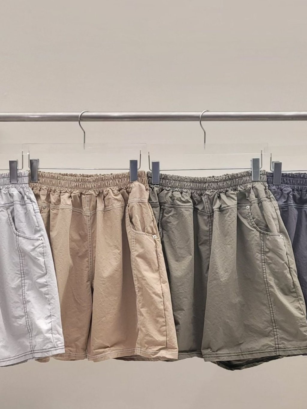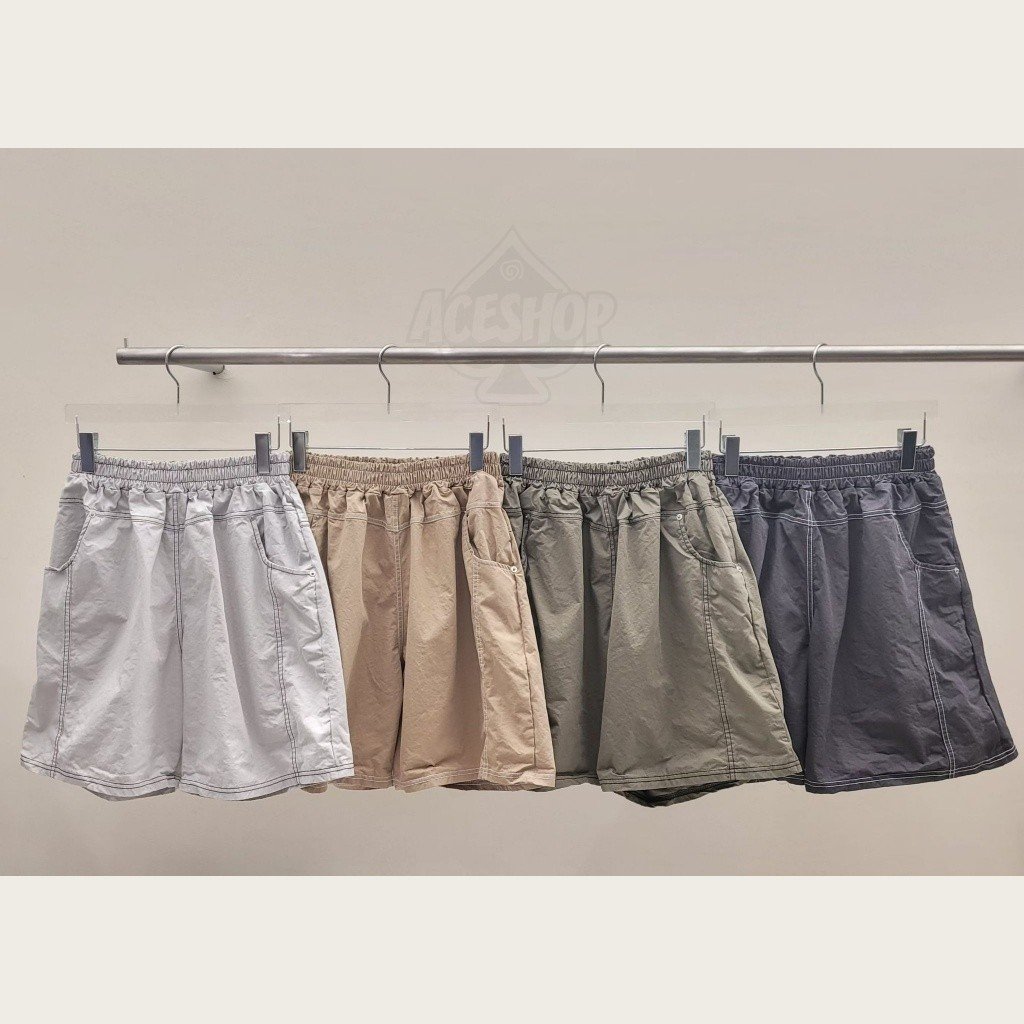 PR26 韓國 - POWDER全橡筋腰明車線短褲 腰26-42吋、HIP48吋、長50cm $199 淺灰、杏、綠、灰黑
