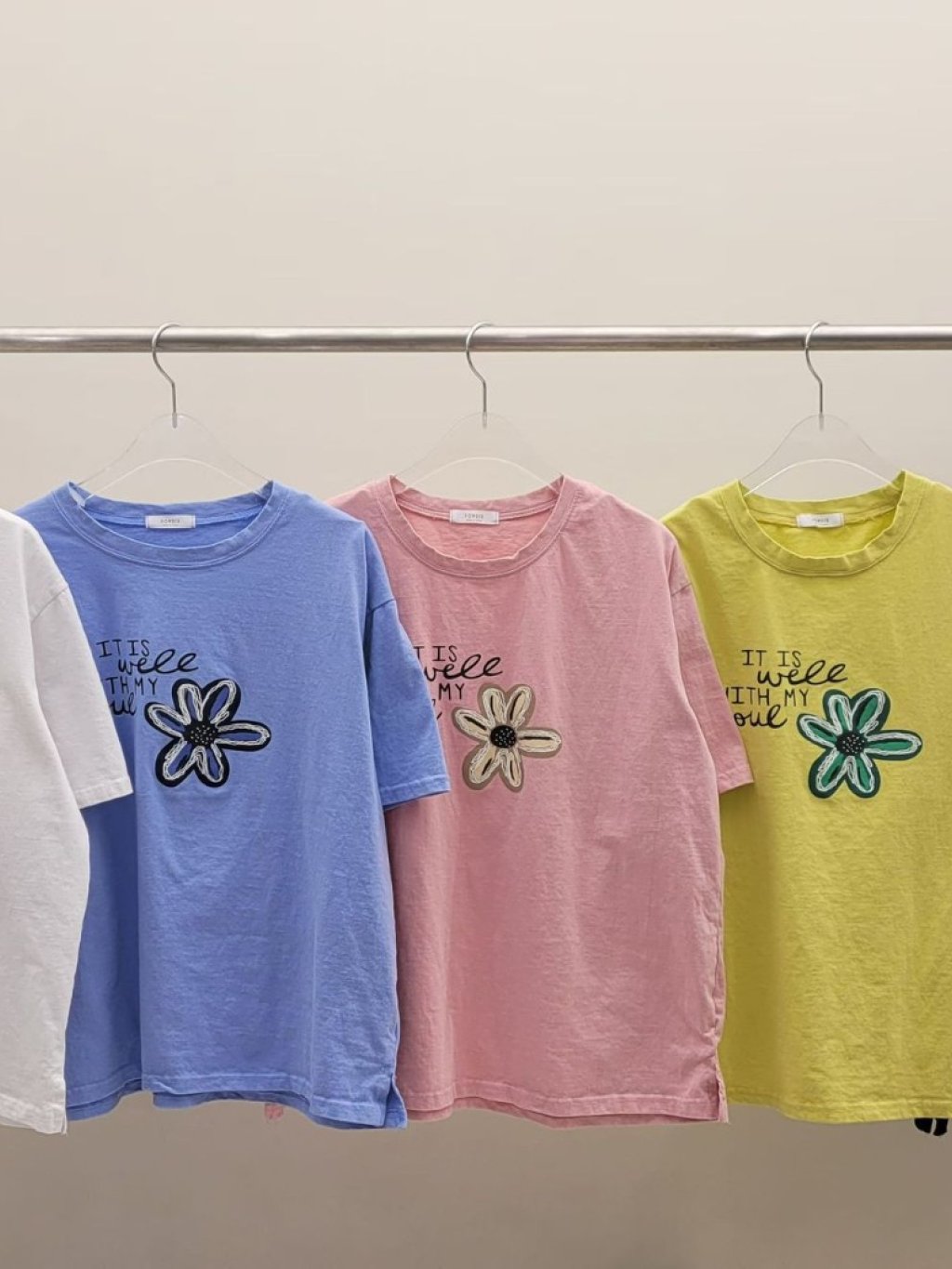 PR27 韓國 - POWDER文字小花Top 長26吋、闊48吋 $149 白、藍、粉、黃、黑