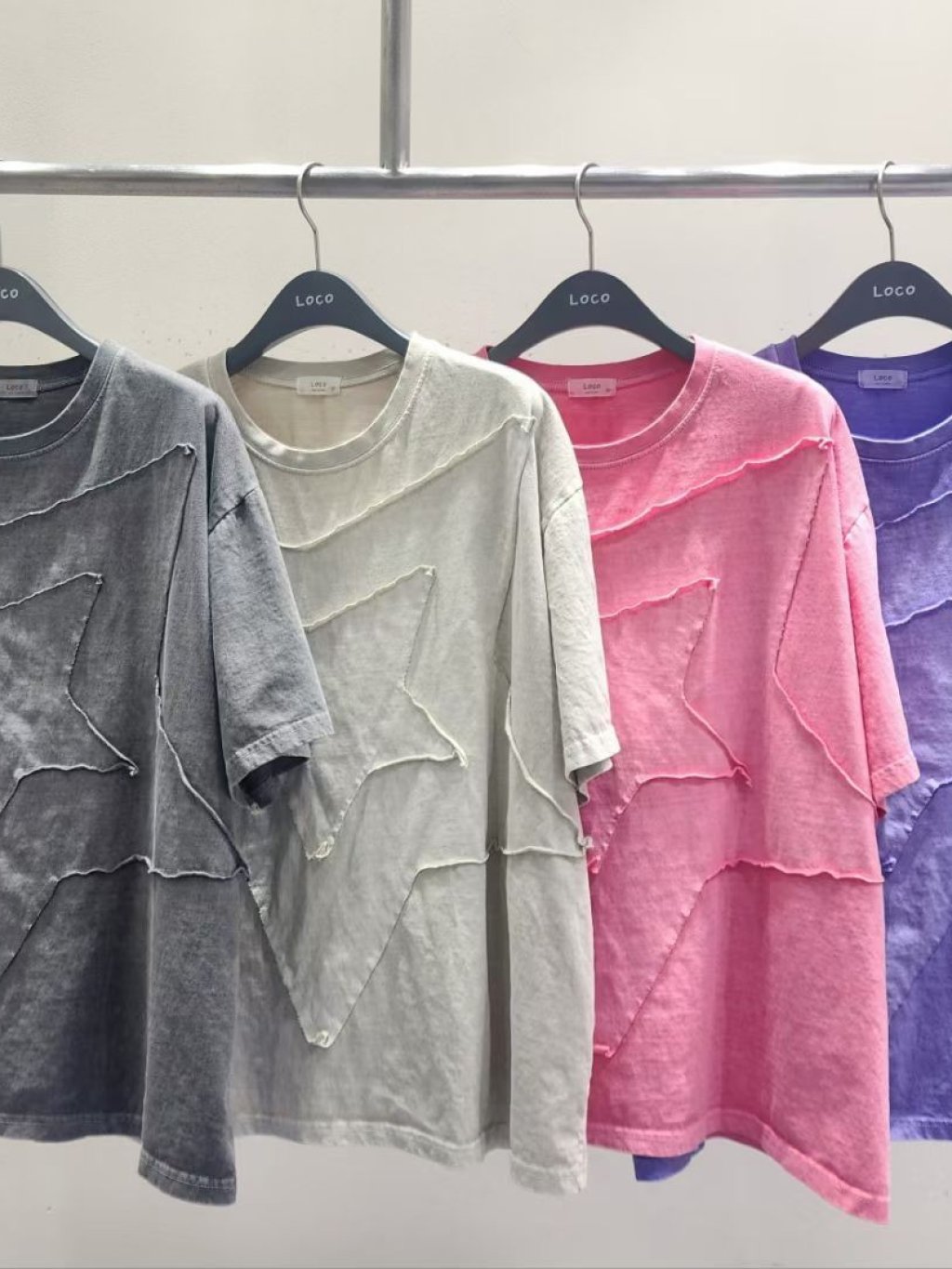 PR28 韓國 - POWDER雙層五角星Top 長26吋、闊50吋 $199 灰黑、灰杏、粉、紫
