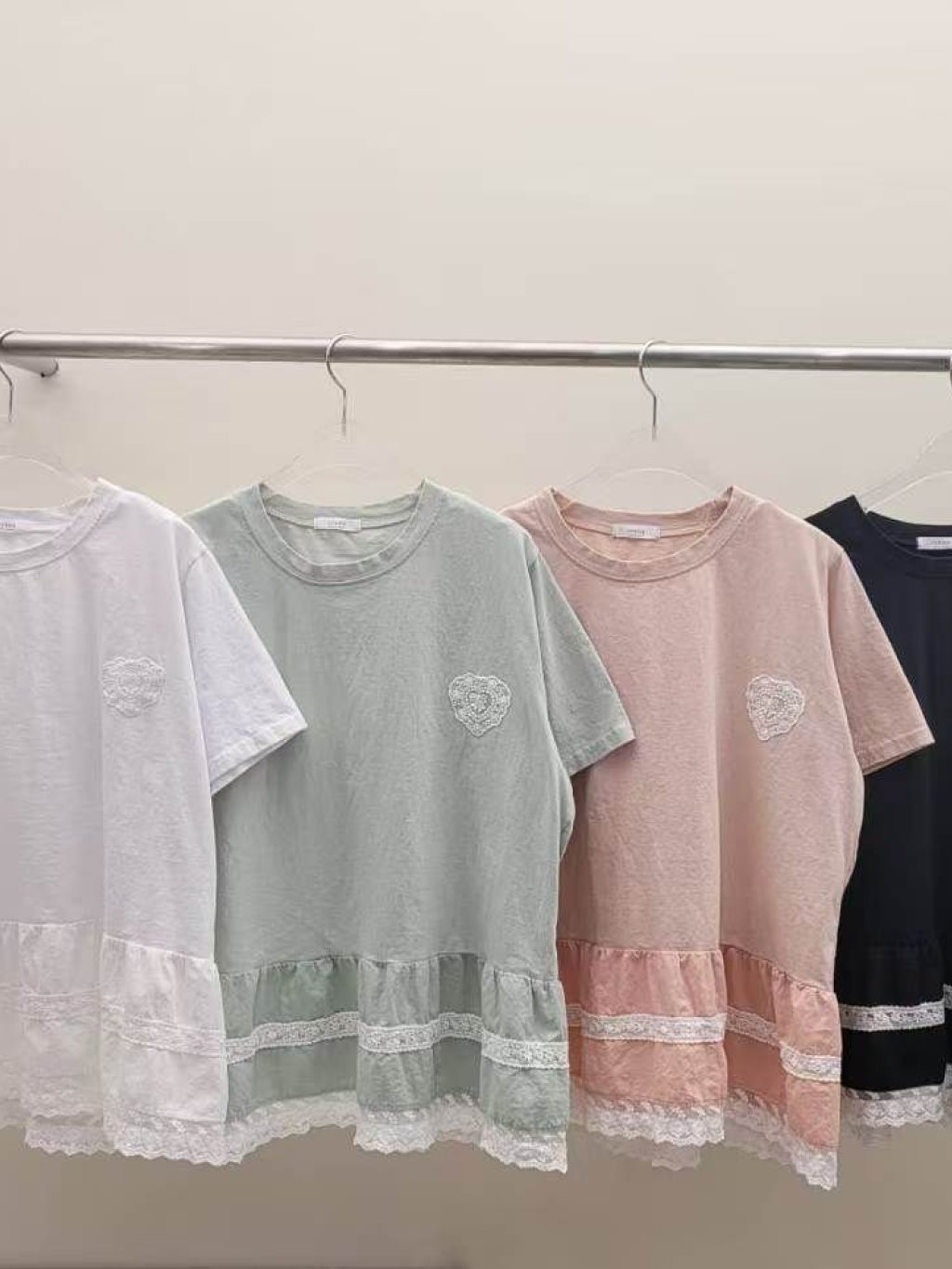 PR30 韓國 - POWDER左胸愛心雙層Ruffle Top 長26吋、闊48吋 $199 白、綠、粉、黑