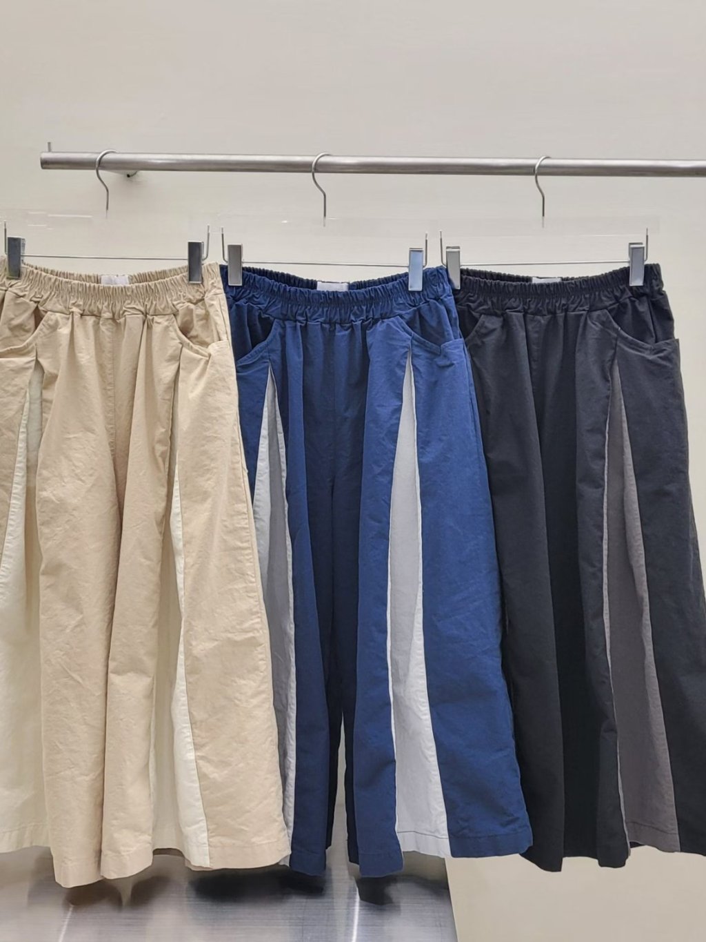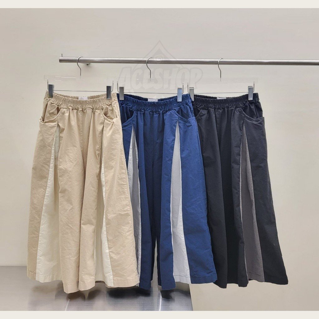 PR33 韓國 - POWDER全橡筋腰撞色特別款闊裙褲 腰26-42吋、HIP52吋、長87cm $239 杏、藍、黑