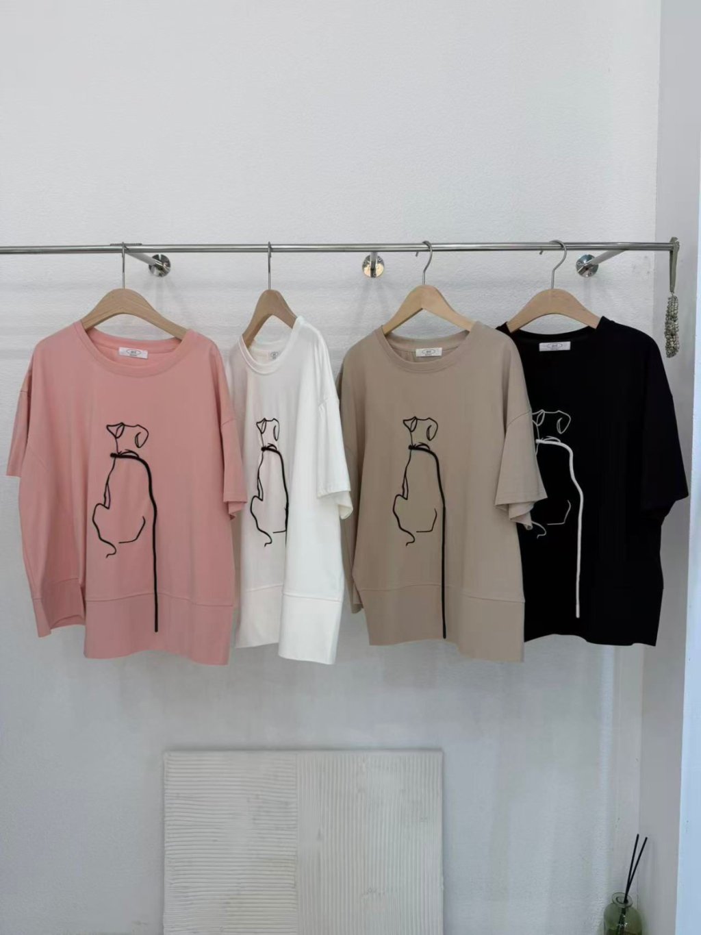 MO53 韓國 🇰🇷 刺繡背影狗仔Top $149 粉、白、杏、黑 長23寸、總闊46寸