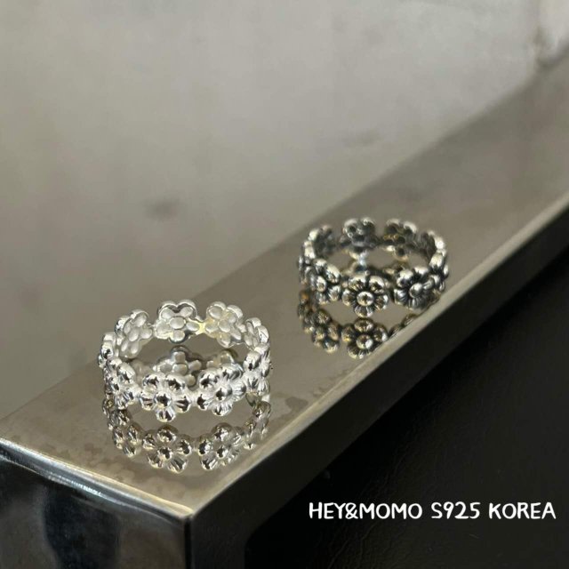 HM604 韓國 🇰🇷 925銀 立體花花(亮白銀、做舊銀)戒指 $209 A.亮白銀 B.做舊銀