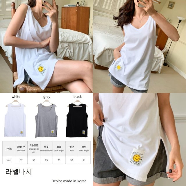 SJ55 棉料哈哈笑車章背心 $59 白、灰、黑 (長29吋 闊40-50吋)