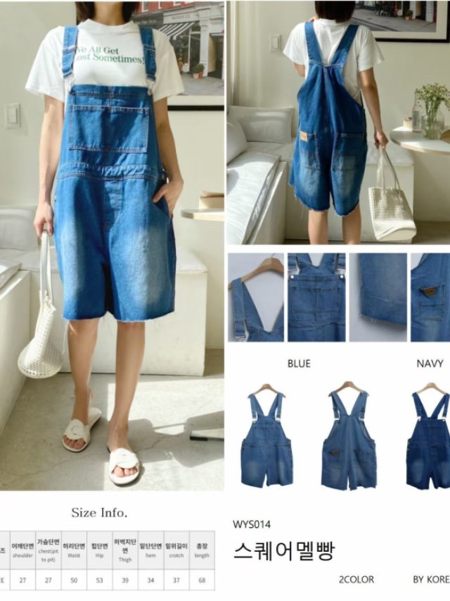SJ66 吊帶牛仔工人短褲 $159 淺藍、深藍 長35寸、闊42寸