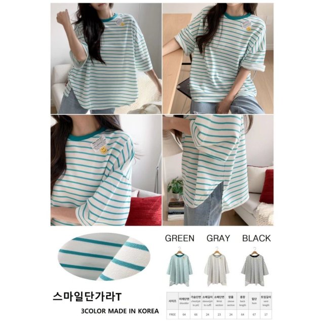 SJ96 撞色橫間哈哈笑Top $89 綠、灰、黑 長27寸、總闊52寸