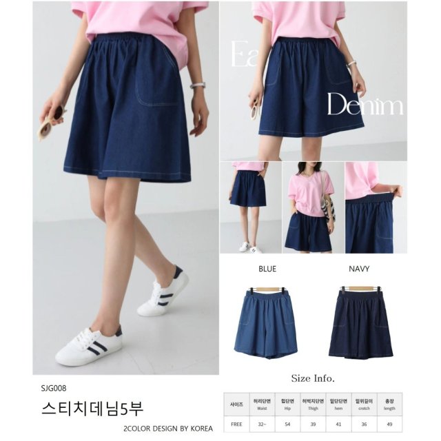 SJ97 全橡筋腰車線牛仔短褲 $119 深藍、淺藍 腰26-52寸、Hip58寸、長49cm
