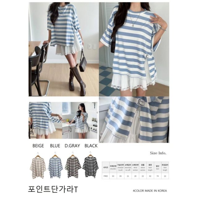 SJ98 撞色橫間側面開叉腳Top $99 杏、藍、灰、黑 長26寸、總闊52寸
